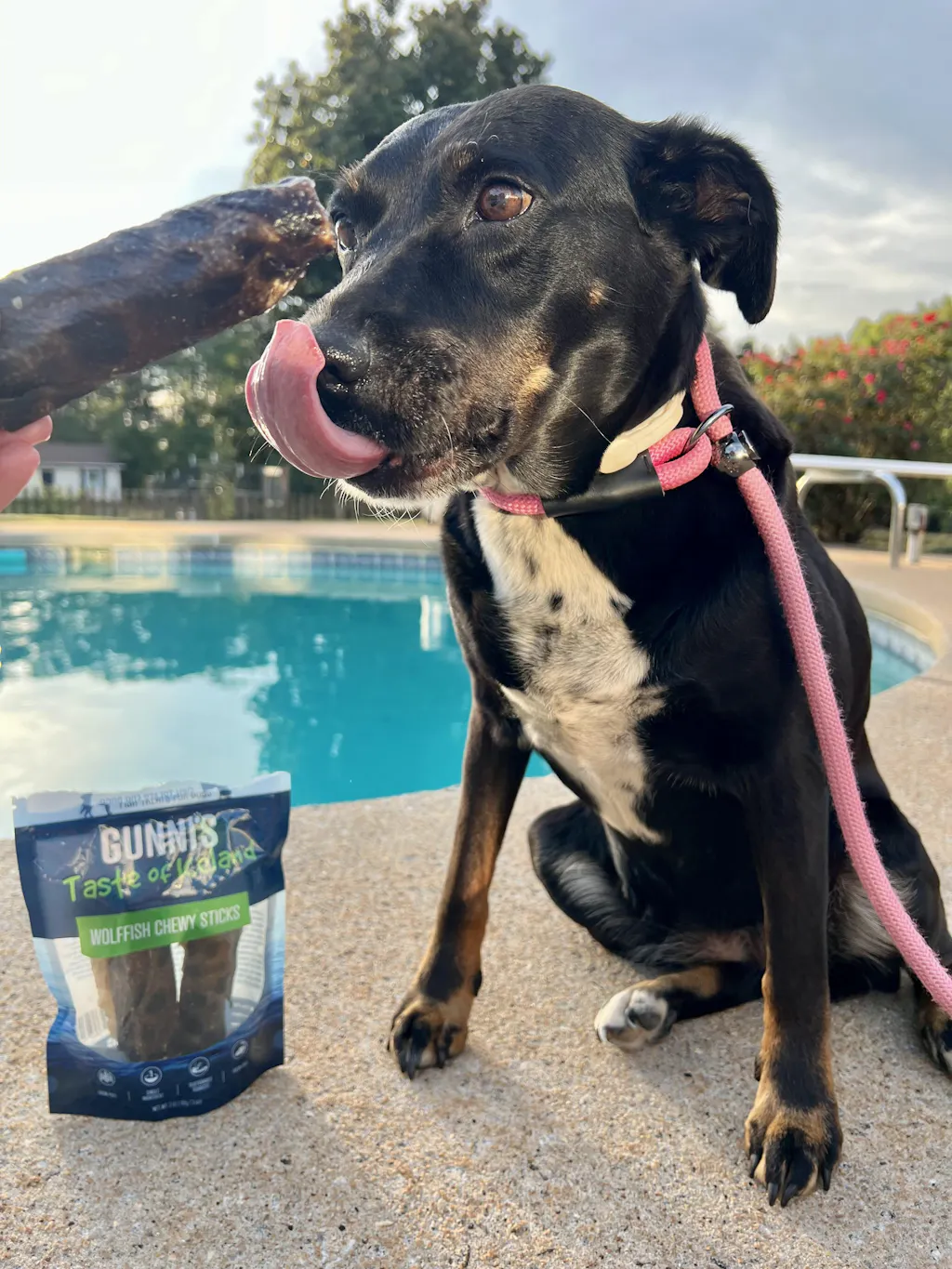 Thank you for leaving a review for our WOLFFISH CHEWY STICKS. We're glad to hear that you enjoyed them! We apologize if they didn't last as long as you had hoped, but we're happy to know that they were still a great treat for your furry friend. Thank you for choosing Gunnis, and we hope to continue providing tasty and enjoyable treats for your pet in the future. Have a great day!