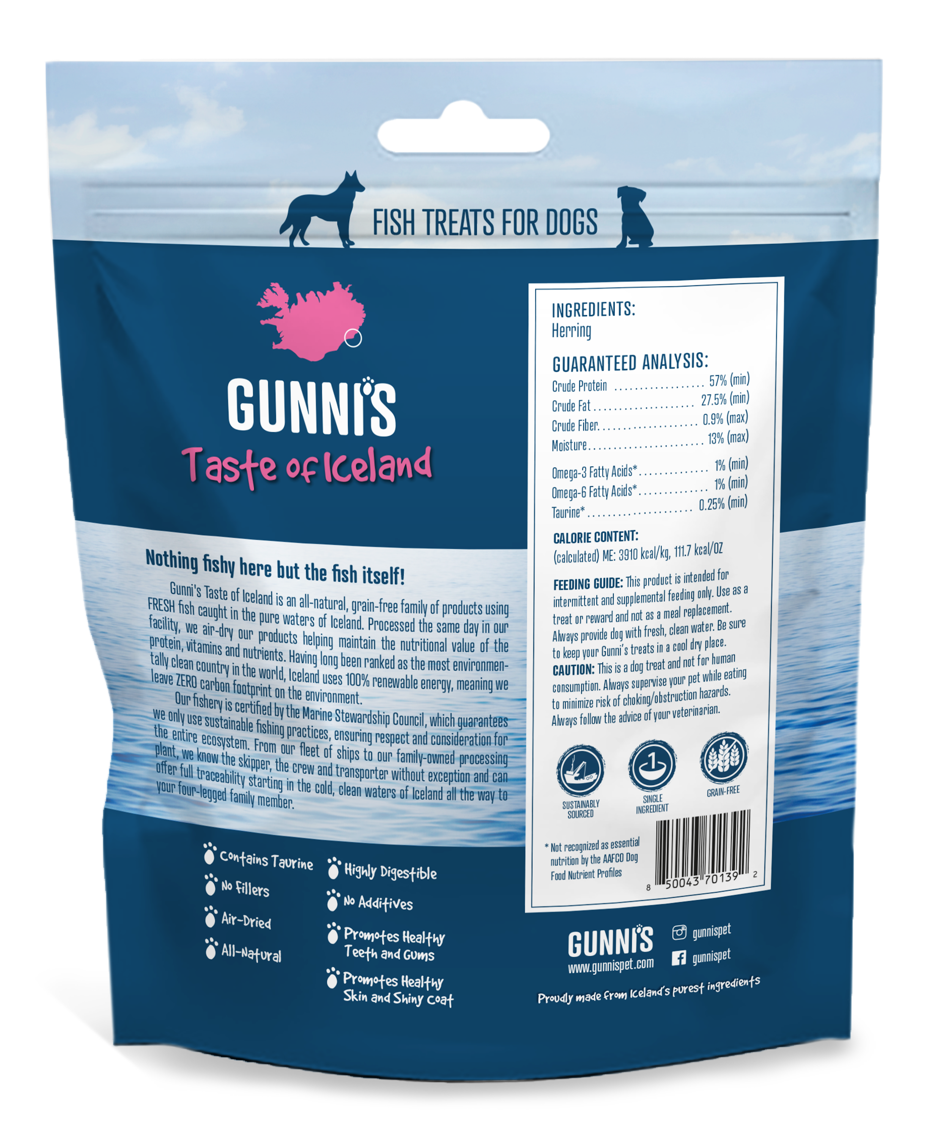 My furbaby loves these! Eats right away in anticipation of getting Gunnis Whole Herring as a reward!