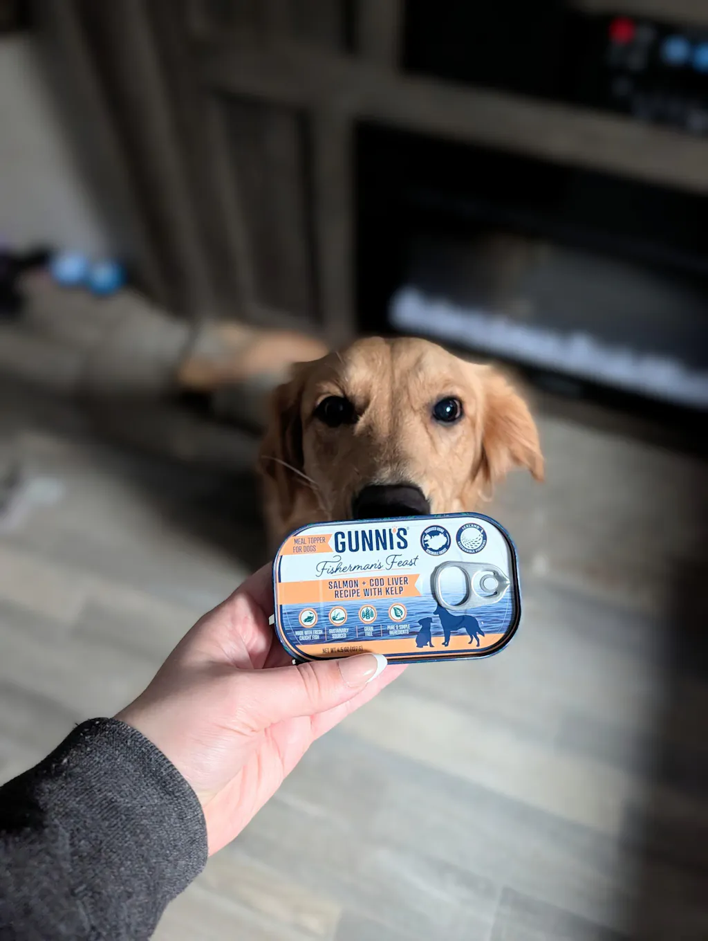Hi there! Thank you so much for your glowing review of our SALMON & COD LIVER RECIPE W/ KELP FOOD TOPPER FOR DOGS. We are thrilled to hear that your pups enjoyed it and were excited about their food. We always strive to create products that dogs will love, and your feedback means the world to us. Thank you for sharing the adorable photo of your happy pups with us. We appreciate your recommendation and look forward to continuing to provide tasty and nutritious options for your furry friends.
