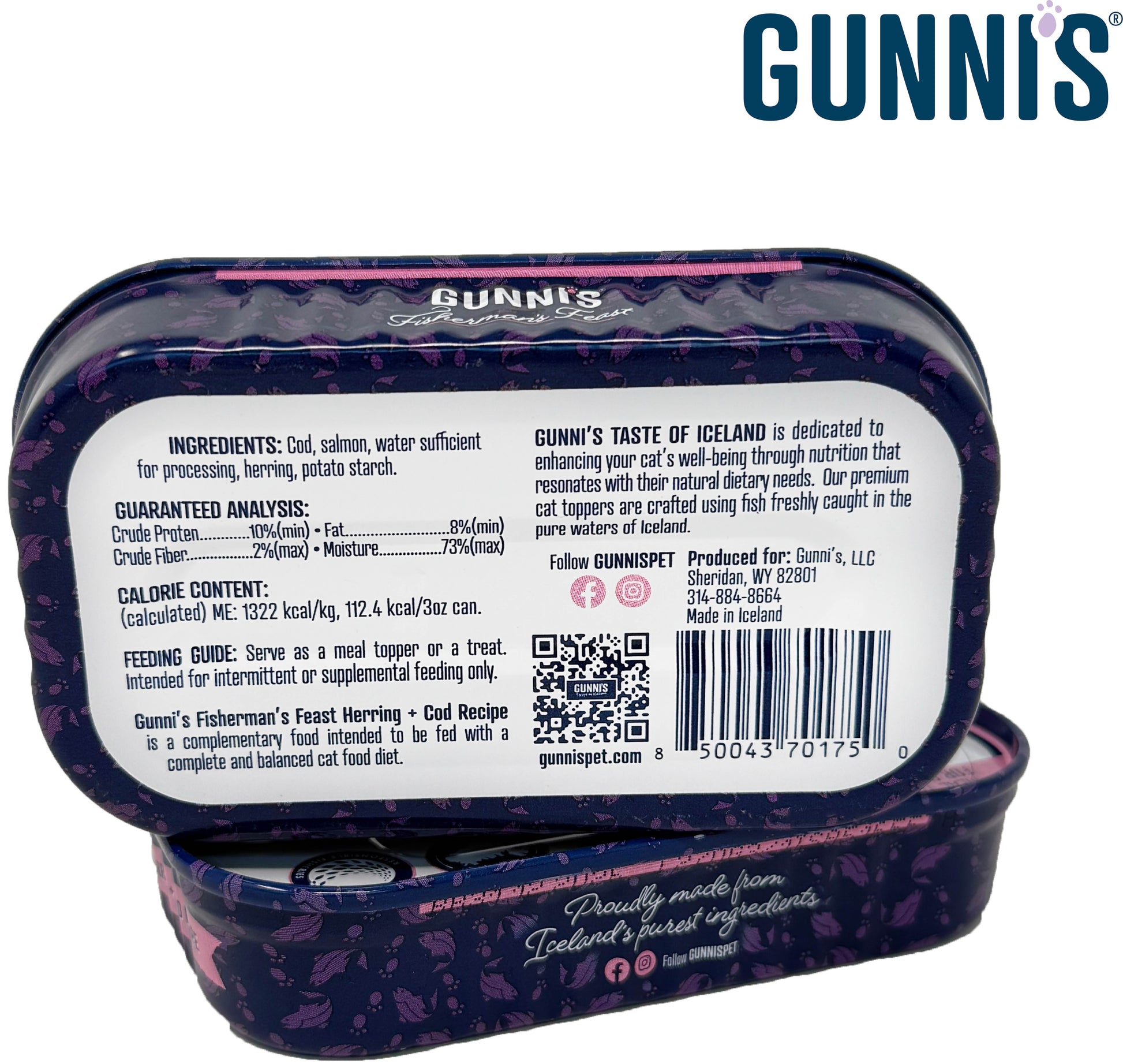 Enhance your cat's meal with our Herring & Cod Recipe Food Topper. Made with real herring and cod, this topper provides a boost of essential nutrients, including protein and omega-3 fatty acids. Simply spread on top of your cat's food for added flavor and health benefits.