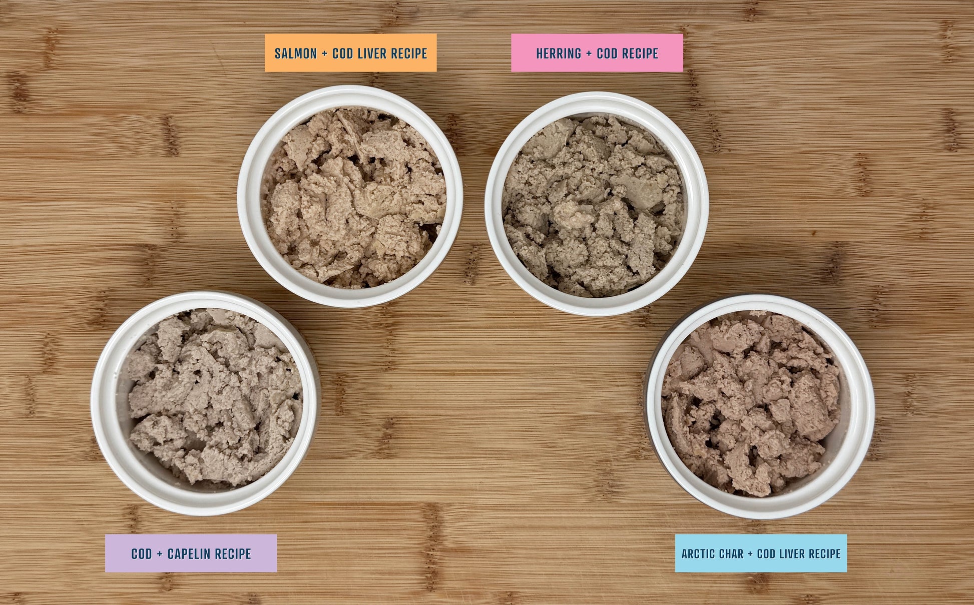 Cod, salmon, water sufficient for processing, herring potato starch, dried kelp